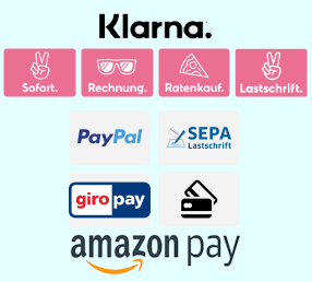 In Zusammenarbeit mit Klarna Bank AB (publ), Sveavägen 46, 111 34 Stockholm, Schweden, bieten wir verschiedene Zahlungsoptionen an.